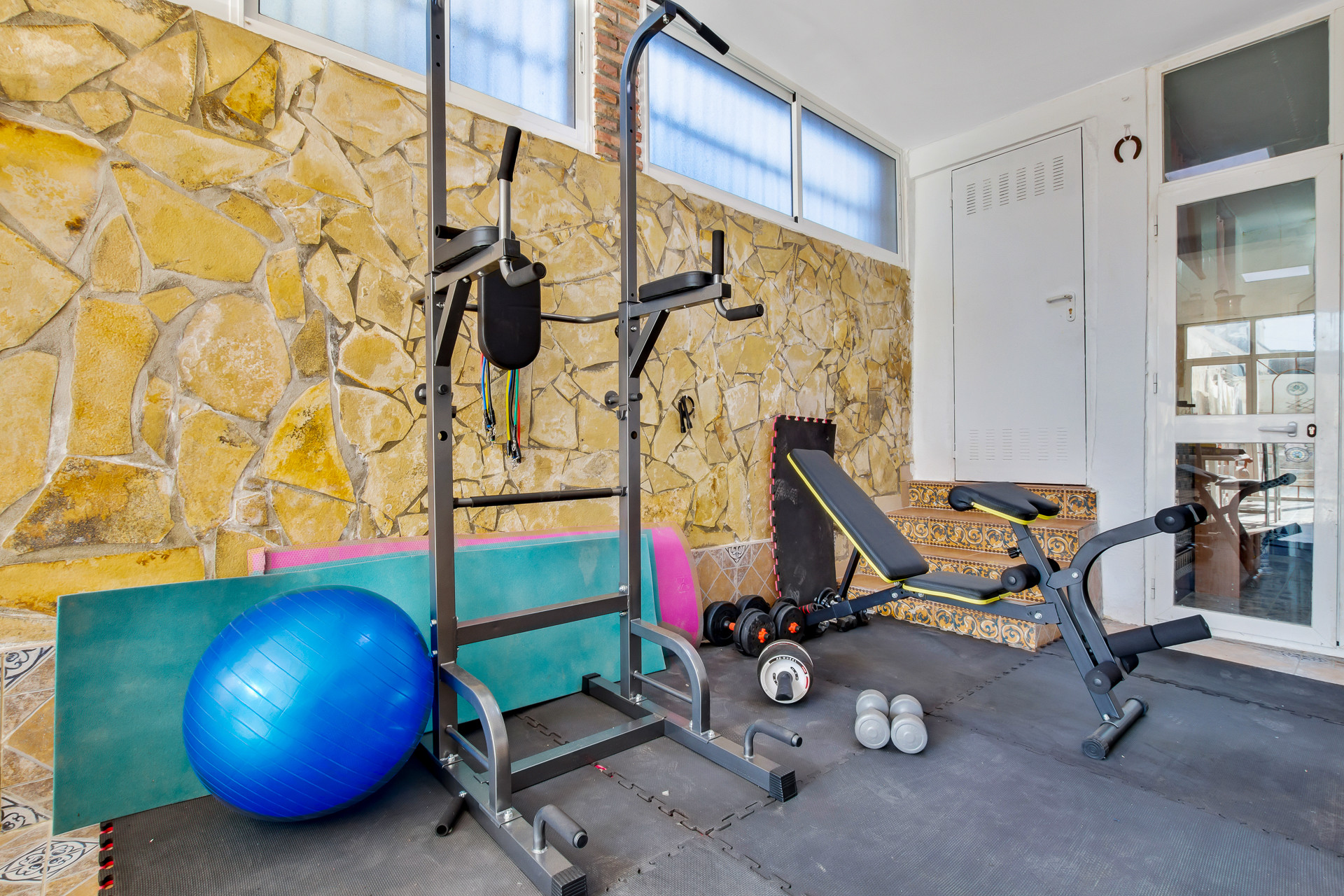 The cottage in Alhaurin de la Torre has 5 bedrooms and has capacity for 10 people. The cottage is 100 m². The accommodation is equipped with the following items: garden, garden furniture, fenced garden, 5 m² terrace, washing machine, barbecue, iron, internet (Wi-Fi), hair dryer, gym / fitness centre, heat pump, air-conditioned, private swimming pool, open-air parking the same building, TV. In the hotplate of glass ceramics independent kitchen, refrigerator, microwave, oven, freezer, dishwasher, dishes/cutlery, kitchen utensils, coffee machine, frying pan, toaster and kettle are provided.
