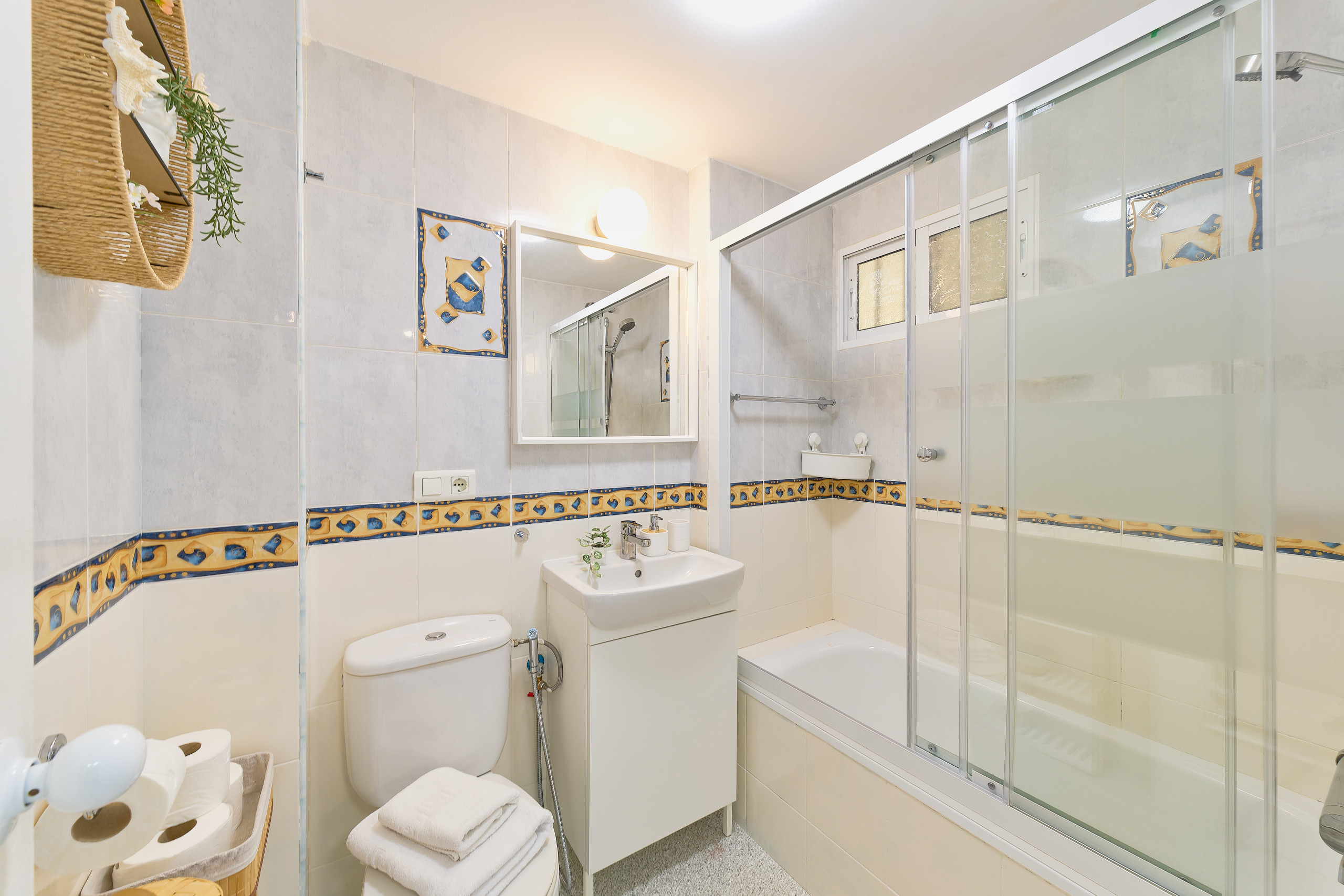 Salle de bain complète avec baignoire, parfaite aussi pour les plus petits