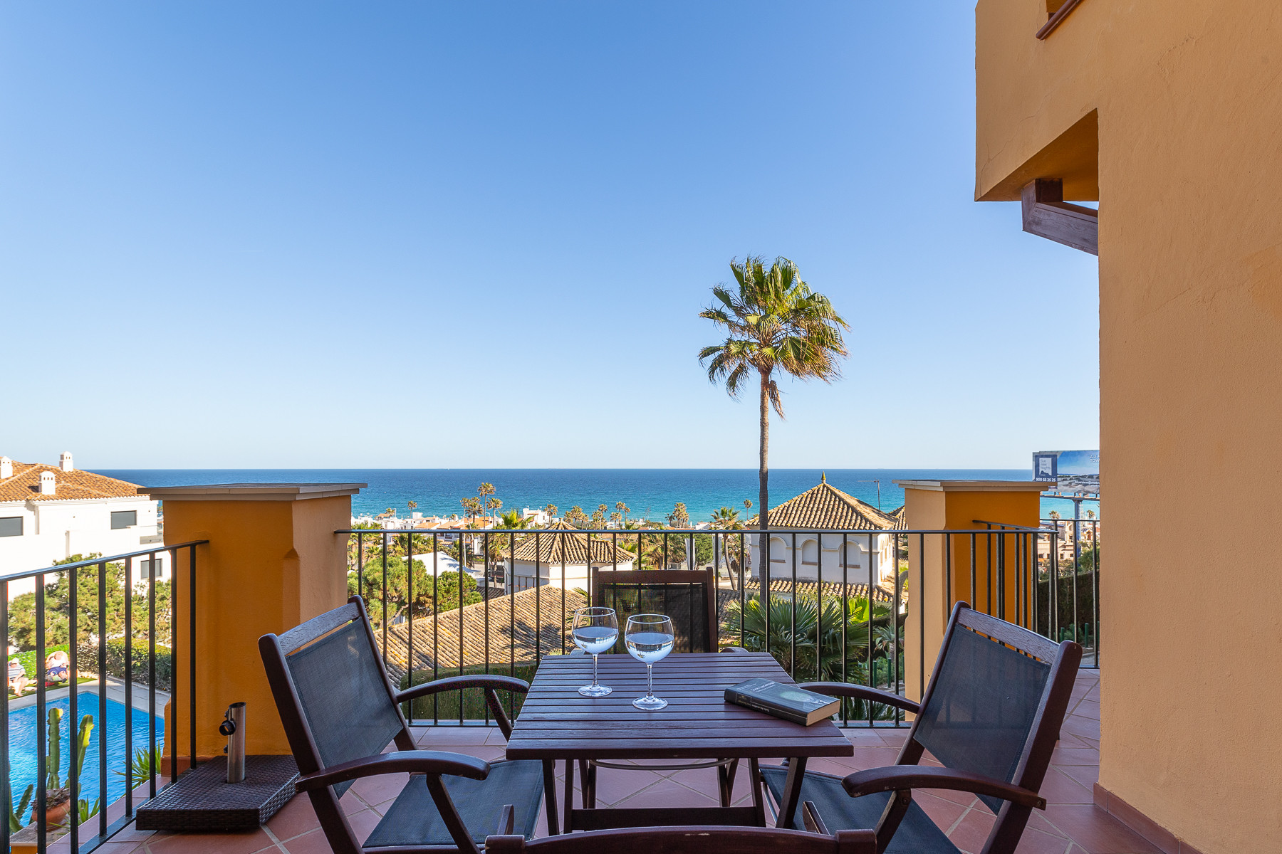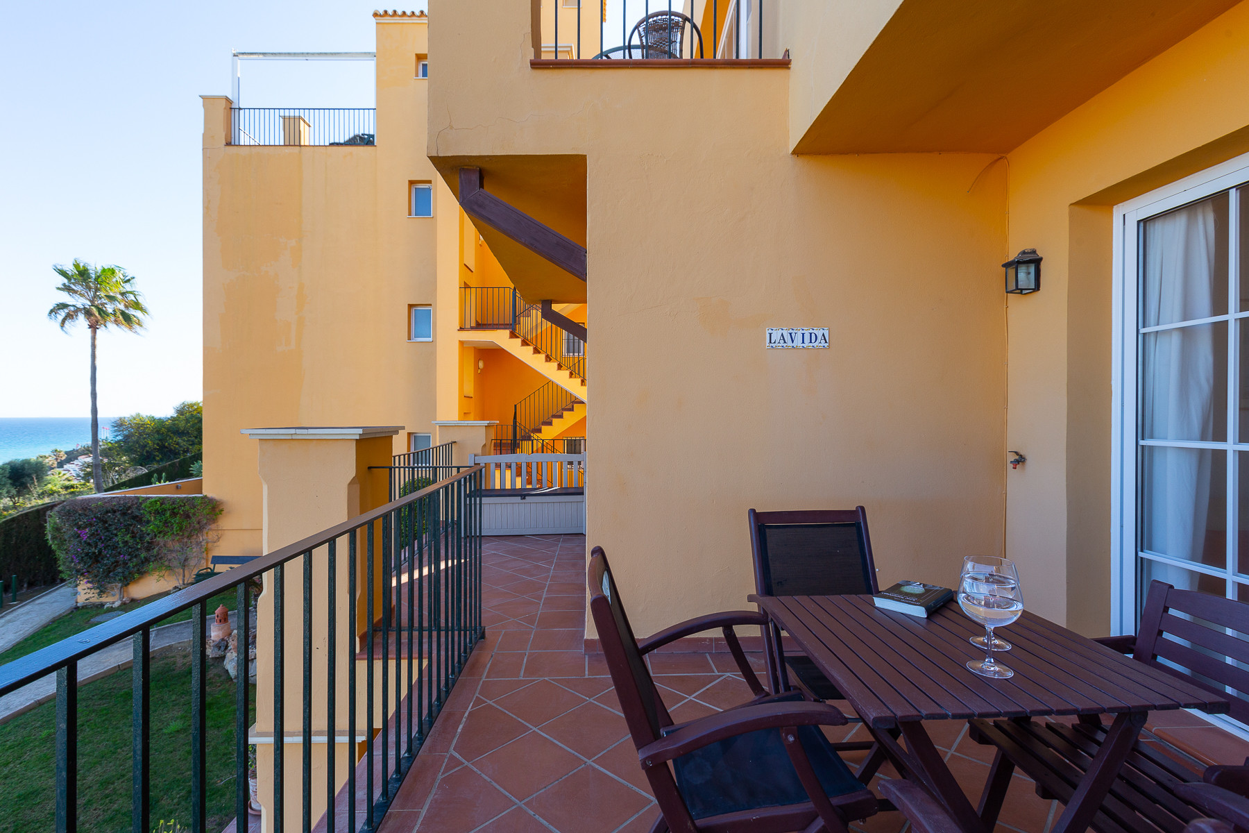 Terrasse privée avec vue sur les jardins et la piscine